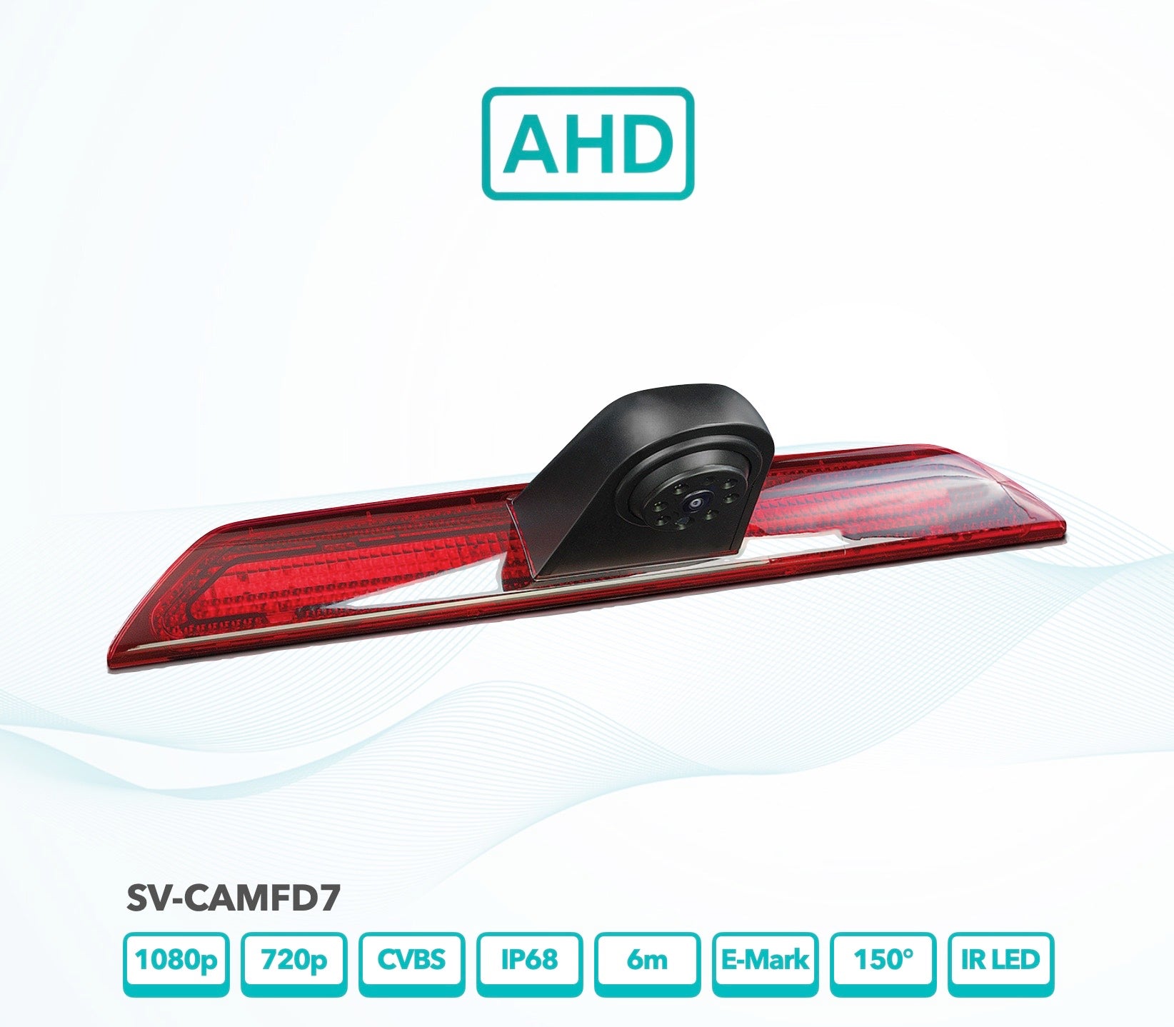 The SV-CAMFD7 Replacement Brake Light Reversing Camera with infra-red LEDs to improve night vision capabilities for the 2014 to 2021 Ford Transit. The camera unit replaces the vehicles original third brake light. The SV-CAMFD7camera and break light combination features a 1/4" CMOS1336 CMOS/AHD, 150 degree viewing angle and IP68 weatherproof rating meaning it can withstand almost anything the world will throw at it, not only adding visual safety to the rear of the vehicle but also keeping the original aesthetics.