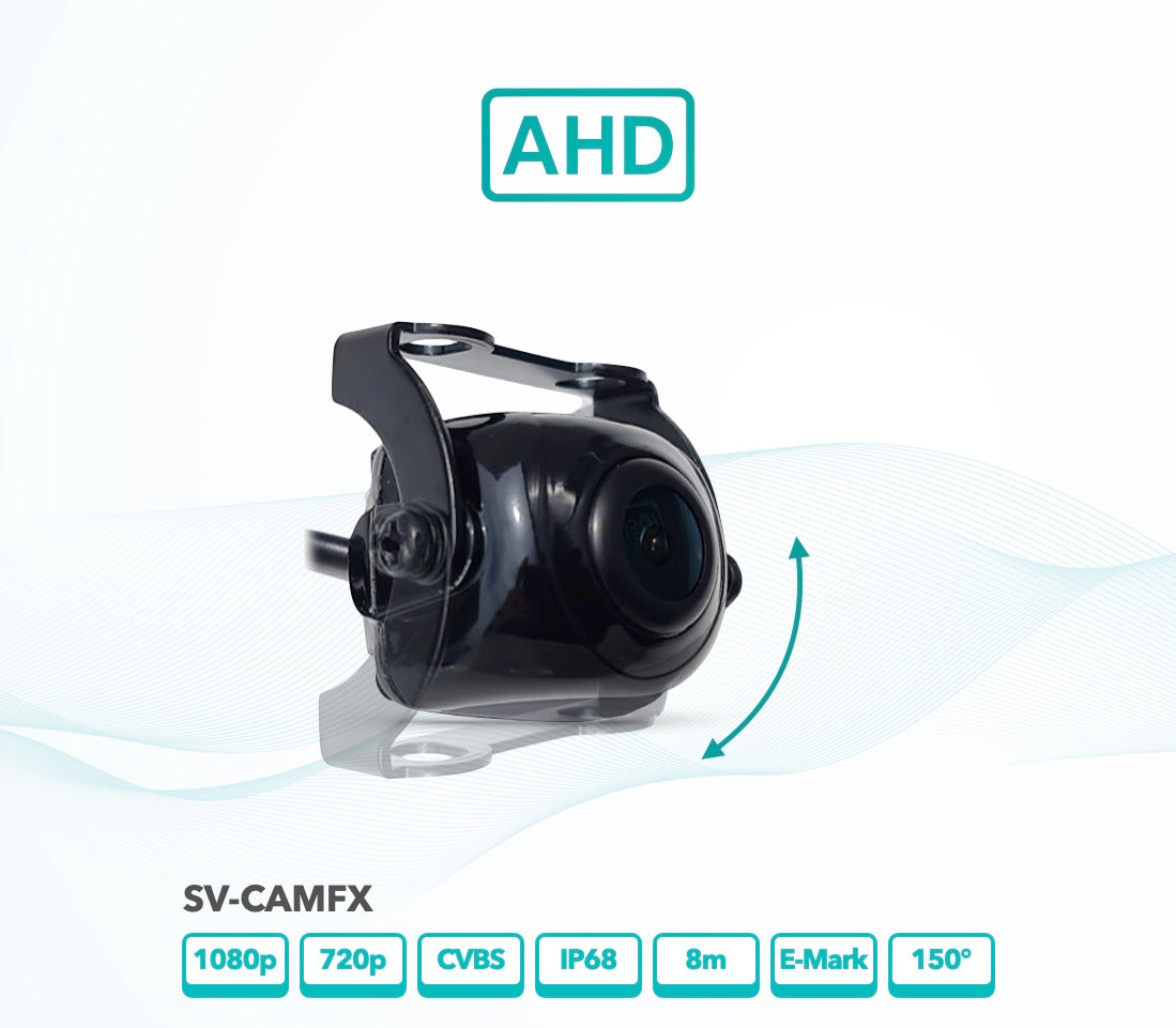 The SV-CAMFX is a flexible universal fit reversing camera with versital bracket that makes it possible to mount it both for under and over hang. It’s specially designed to fit most cars and vans. Featuring a AHD (switchable) image sensor, 600 TV lines and a 150-degree viewing angle the camera gives the driver a smooth clear high res image. The SV-CAMFX is also IP68 rated, meaning it is protected against all standard weather conditions and will continue to operate in temperatures ranging from -20degrees C to +70 degrees C.